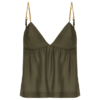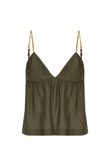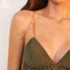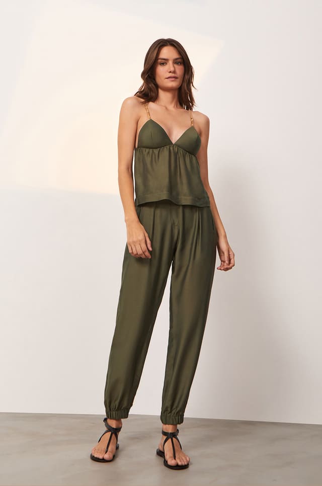 Leve e sofisticada, a blusa verde Madeline é uma peça versátil para usar em diversas ocasiões e pode ser combinada com calças e shorts da coleção. Sua cor, um novo neutro, preserva um estilo atemporal. Experimente usá-la com sandálias, bolsas e outros acessórios ViX. – Alças finas com regulagem – Detalhe em metais dourados e corda elástica – Busto triangular com bojo – Elástico nas costas e Sofisticada e versátil.