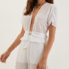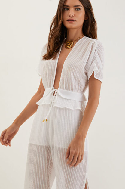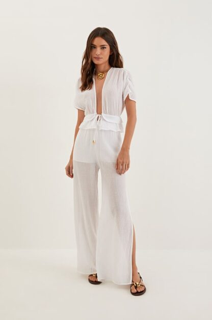 Atemporal, a blusa branca de manga curta Allie é perfeita para combinar com calças, saias e shorts da coleção. Leve seu look do dia para noite com flats, sandálias altas, bolsas e outros acessórios ViX.