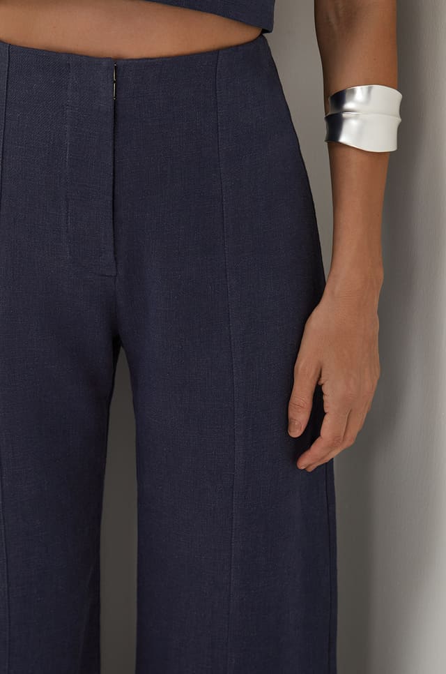Clássica e cool, a calça de alfaiataria azul Alain é uma peça de fit perfeito para ter para sempre. Experimente usá-la com sandálias, bolsas e outros acessórios ViX Paula Hermanny.