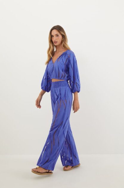 Versátil, o top azul Rubia é uma peça que combina com calças de cintura alta e shorts da coleção. A laise exclusiva ViX inspirada no movimento das ondas, dispostas em base 100% algodão. A delicadeza do tecido especial em pequenos cut-outs que esculpem cada peça, criando padrões equilibradamente assimétricos. Experimente usá-lo com sandálias, bolsas e outros acessórios ViX. – Top sem alça – Decote reto na frente e nas costas – Busto até a cintura de lastex – Leve babado – Possui forro e Com um novo toque em uma silhueta clássica, a calça pantalona azul Babi é uma peça cool para combinar com tops e blusas da coleção. A laise exclusiva ViX inspirada no movimento das ondas, dispostas em base 100% algodão. A delicadeza do tecido especial em pequenos cut-outs que esculpem cada peça, criando padrões equilibradamente assimétricos. Experimente usá-la com sandálias, bolsas e outros acessórios ViX. – Cintura média – Cós largo com lastex – Possui forro curto Detalhes feitos à mão no ateliê ViX