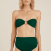 Sutiã tomara que caia com fechamento atrás com argola em metal dourado. Lycra reciclada com proteção UV FPU 50+ no clássico verde-floresta. O sutiã de biquíni tomara que caia é perfeito para ser usado com uma sobreposição no pós-praia.