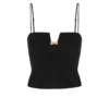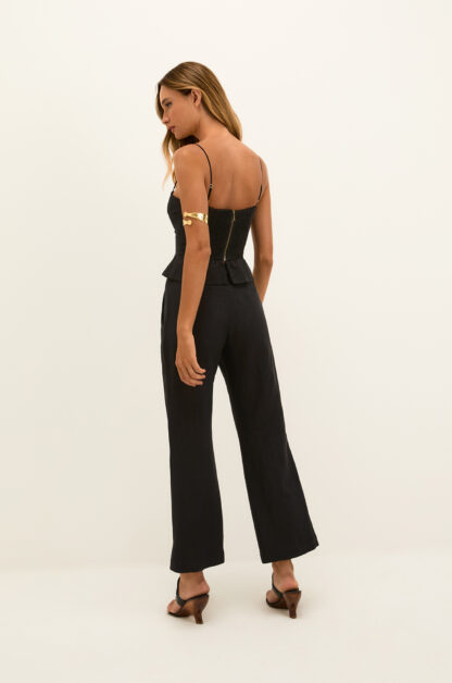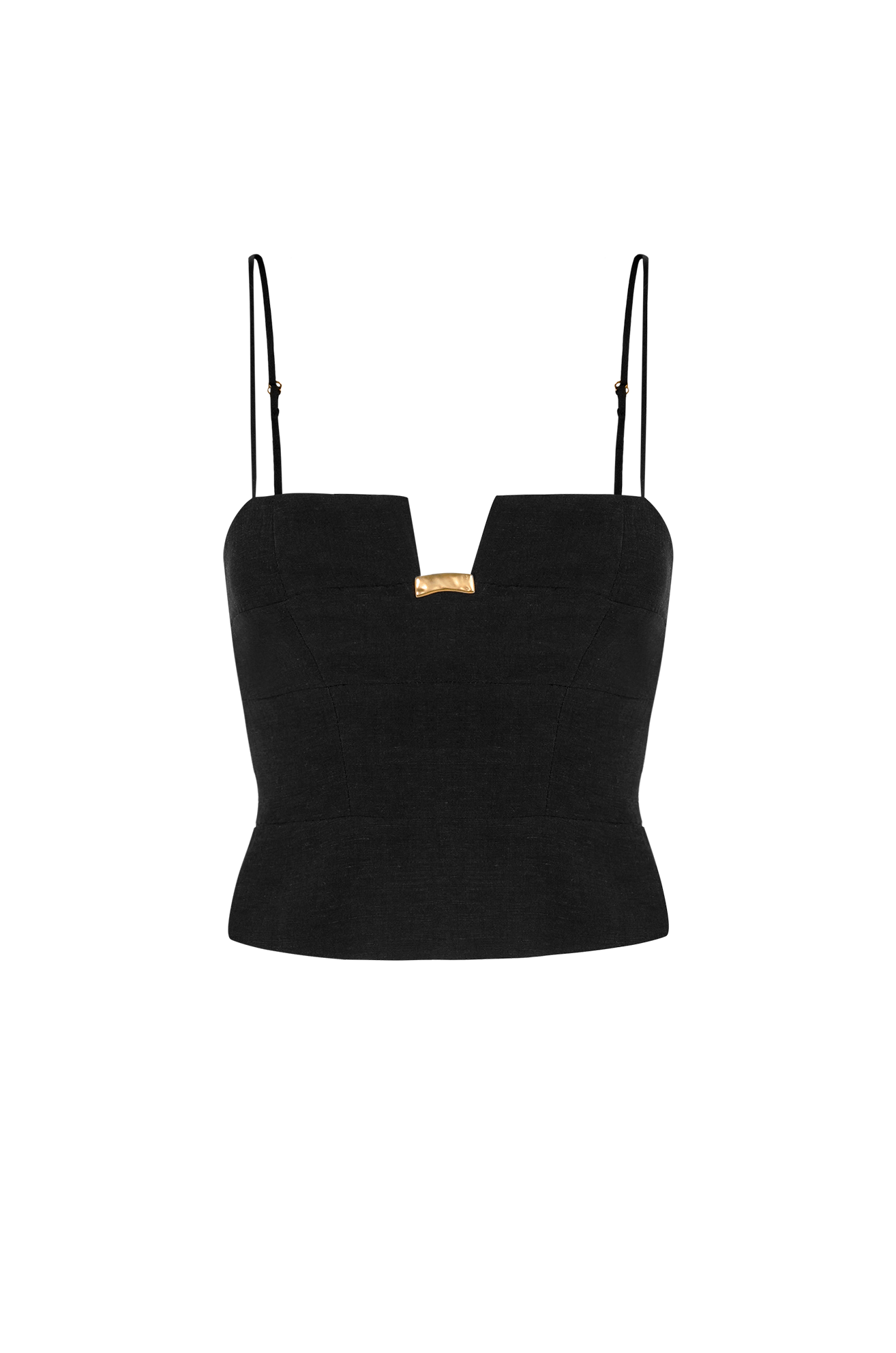 Despretensiosamente sexy, o top preto Bel destaca a silhueta com shape estruturado de alças finas ajustáveis. O decote quadrado central possui detalhe de metal dourado removível, e a pala da cintura levemente ampla garante conforto. Versátil, combina com calças e shorts da coleção, flats e acessórios ViX Paula Hermanny.