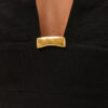– Decote quadrado com detalhe em metal dourado removível