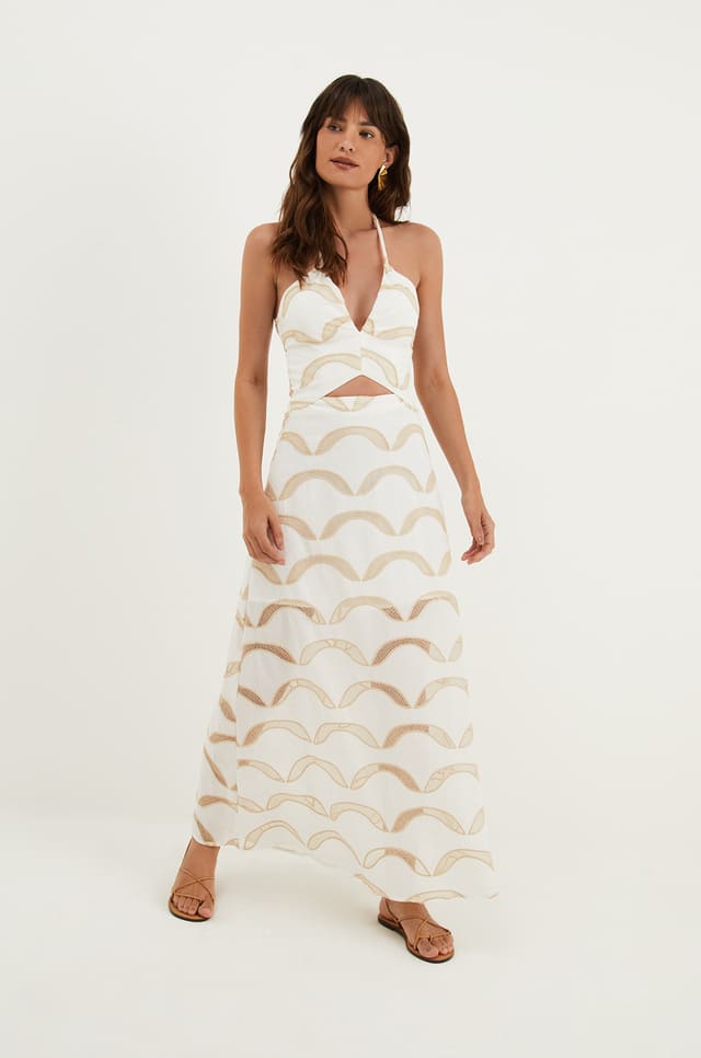 Versátil e fluido, o vestido longo branco Aila é uma aposta para ter por diversas temporadas. Leve seu look do dia para a noite com flats, sandálias altas, bolsas e outros acessórios ViX Paula Hermanny.